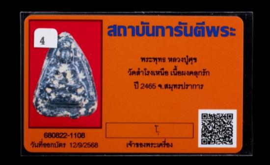 พระพุทธ หลวงปู่ ศุข วัดปากคลองสำโรง ปี 2465 เนื้อคลุกรัก พร้อมบัตรgpa