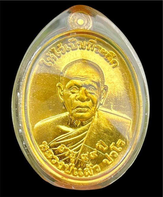 หลวงปู่แผ้ว ยันต์สวน99 เนื้อฝาบารต เลข5694 พร้อมเลี่ยมเก็บผิว