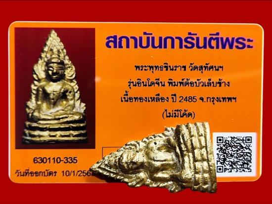 สภาพสวยๆเหลืองๆ พระพุทธชินราข วัดสุทัศน์ฯ รุ่นอินโดจีน พิมพ์ต้อบัวเล็บข้าง เนื้อทองเหลือง ปี2485 กรุงเทพฯ ไม่มีโค้ด พร้อมบัตรG-PRA |