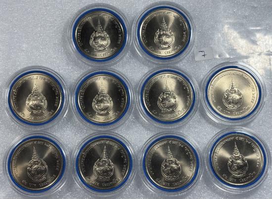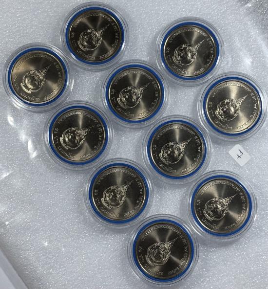 เหรียญ 50 บาท ที่ระลึกมหามงคลเฉลิมพระชนมพรรษา 5 รอบ จำนวน 10 เหรียญ สภาพสวยๆ+ตลับ