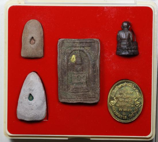 เคาะเดียวแดง หลวงปู่ทวด รุ่นสร้างพระตำหนัก ร.9 ปี 2541 ชุดกรรมการ 5 องค์ กล่องเดิม สวยมาก