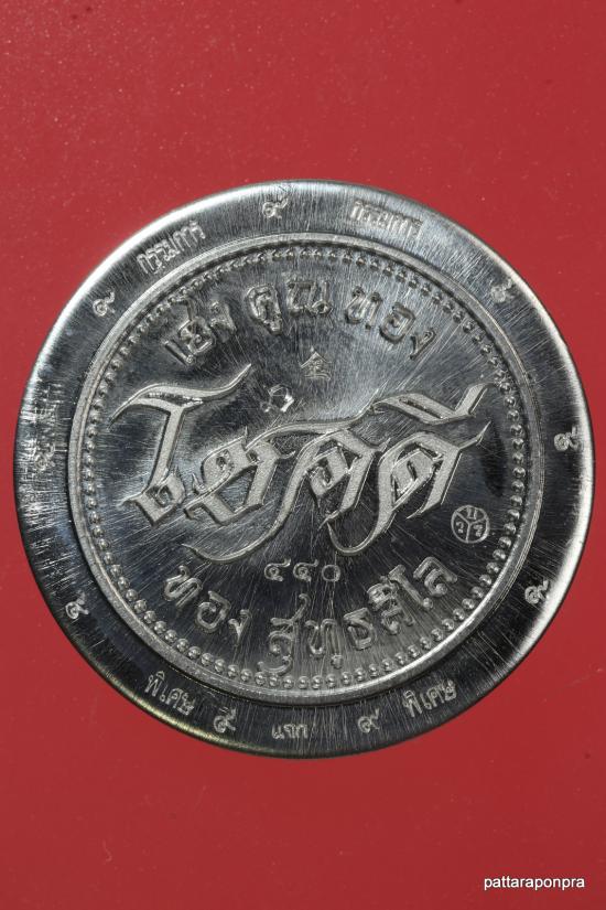 เหรียญหลวงพ่อทอง รุ่นโชคดี ปี 2564 เนื้อตะกั่วไม่ตักปีก หลังเรียบ มีจาร หมายเลข 440 |