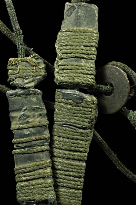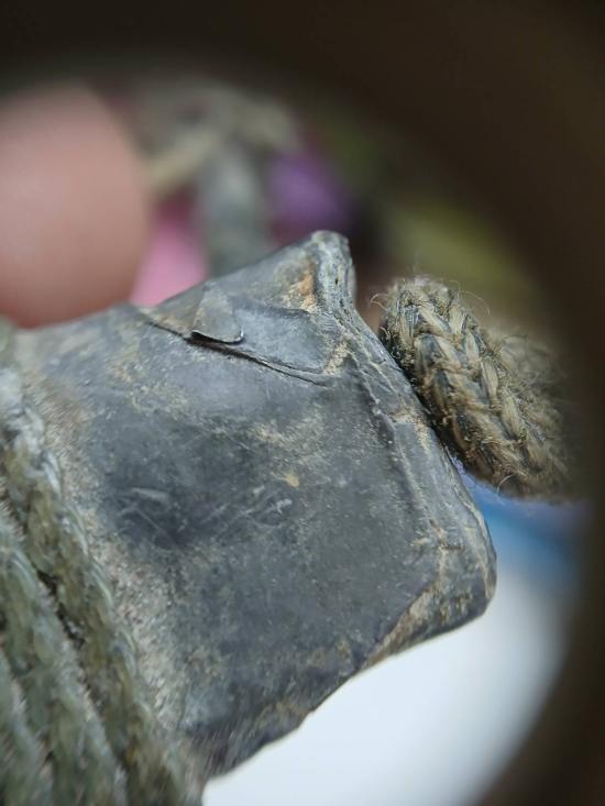 ตะกรุดเนื้อตะกั่ว(สภาพหัก)พร้อมเชือกคาดไม่ทราบที่ |