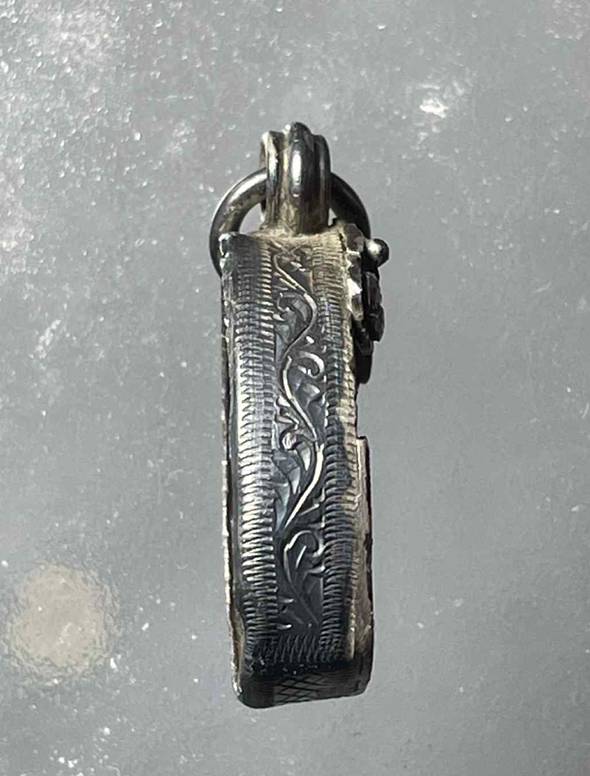 กรอบเงินเก่า มือสอง ใส่ปรกมะขาม ขนาด 2.5x4 cm สภาพดีครับ...วัดใจ