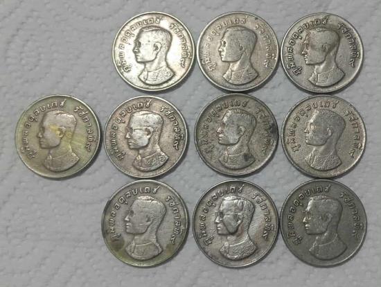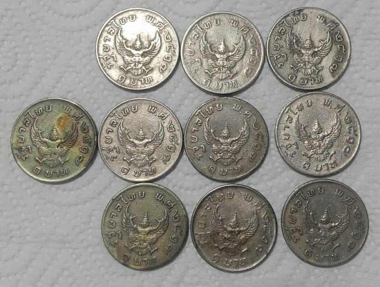 เหรียญ 1 บาท หลังครุฑ พ.ศ.2517 ในสมัย รัชกาลที่ 9 พกติดตัวไว้เป็นมงคล เหรียญสภาพผ่านการใช้งาน จำนวน 10 เหรียญ ครับ |