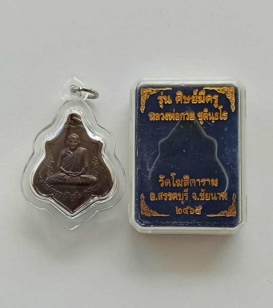 "เคาะแรกแดง"เหรียญหลวงพ่อกวยหลังยันต์ เนื้อทองแดงรมดำ บล็อก น2จุด รุ่นศิษย์มีครู ปี 2565 |
