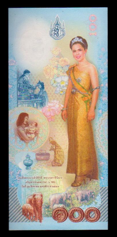 ## ธนบัตรที่ระลึก 100 บาท สมเด็จพระนางเจ้าพระบรมราชินีนาถในรัชกาลที่ 9 เฉลิมพระชนมพรรษาครบ 6 รอบ ## ไม่ผ่านการใช้ |