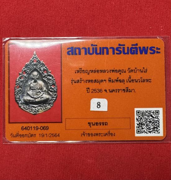 เหรียญรอหลวงพ่อคูณ วัดบ้านไร่ รุ่นสร้างหอสมุด พิมพ์ฉลุเนื้อนวโลหะ ปี2536 |