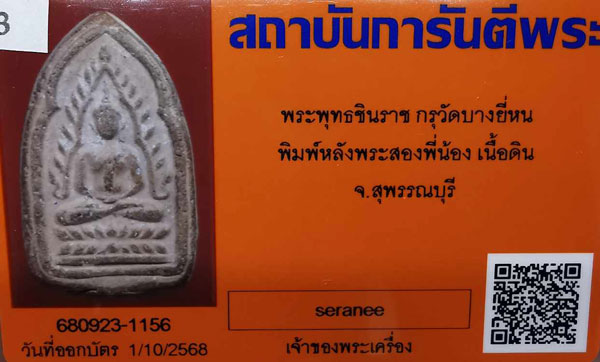 พระพุทธชินราช กรุวัดบางยี่หน พิมพ์หลังพระสองพี่น้อง เนื้อดิน จ.สุพรรณบุรี + บัตรG-pra สภาพเดิมค่ะ |