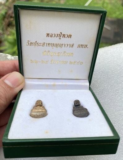 #ชุดหลวงปู่ทวด เบ้าทุบเล็ก เนื้อเงิน+เนื้อนวะ วัดประสาทบุญญาวาส รุ่นแรก พ.ศ.2540 จัดสร้างขึ้นที่วัดประสาทบุญญาวาส โดยมีพิธีเททองเมื่อวันที่ 13 มิถุนายน 2540 และพิธีพุทธาภิเษกอย่างยิ่งใหญ่ ถึง 3 วัน 3 คืน วันที่ 22-23-24 สิงหาคม 2540 โดยคณาจารย์ทั่วประเทศ พิมพ์นี้เป็นพิมพ์รูปเหมือนหลวงปู่ทวด หล่อโบราณ เบ้าทุบเล็ก รุ่นแรก ของวัดประสาทบุญญาวาส