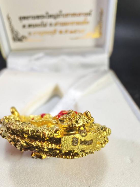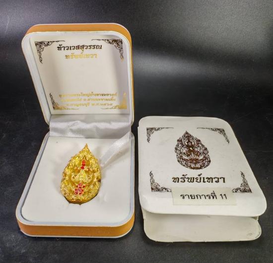พุทธศิลป์ เหรียญท้าวเวสสุวรรณ รุ่น ทรัพย์เทวา วัดถ้ำเขาชะอางค์ จังหวัดกาญจนบุรี หน้าเทพพิมพ์ทรงจำปา หลังพญาเต่าเรือน(เต่ามังกร) รกที่.11 เนื้อบรอนซ์ชุบทองกายแดงพื้นแดง No.227 เลขสวย ราคาจอง 999 บาท กล่องเดิม