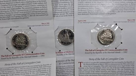 เหรียญที่ระลึก 5 ดอลลาร์ "TO THE HEROES OF CORREGIDOR" ซึ่งเป็นเหรียญที่ระลึกถึงวีรบุรุษแห่งคอร์เรฮิดอร์ ทั้งหมด3เหรียญ |