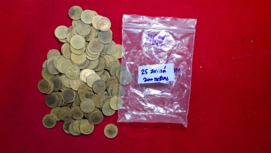 วัดใจ**** ทั้งหมด 200เหรียญ เหรียญ 25สตางค์ ปี2500 สภาพผ่านใช้ |