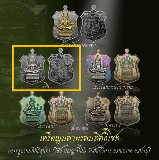 | เหรียญมหาพรหมสิทธิโชค พระครูปลัดวิชัย วัดสันติวิหาร เนื้อเงิน หมายเลข 1386 จารยันต์ทั้งหน้าและหลัง จำนวนการสร้าง 1500 องค์ |
