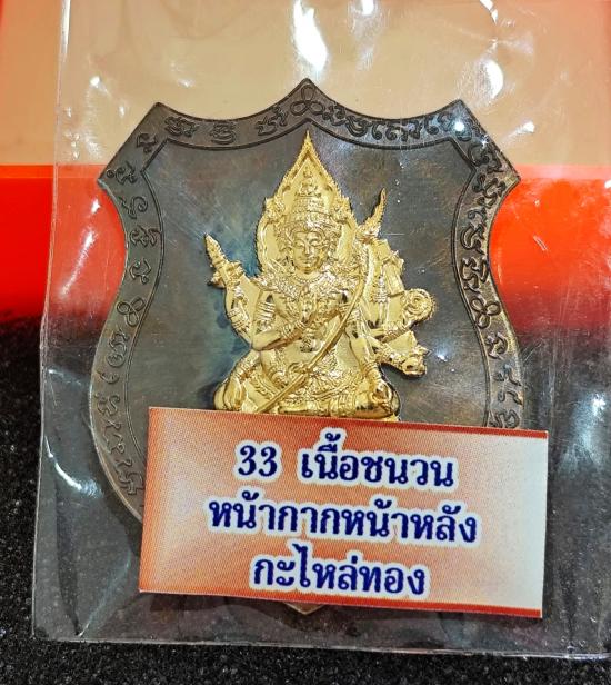 เหรียญท้าวมหาพรหม รุ่นเจ้าสัวพันล้าน(บอย ท่าพระจันทร์) เนื้อชนวนหน้ากากหน้าหลังกะไหล่ทอง เลขโค๊ต ๒๓๒๑ พร้อมกล่องเดิม |