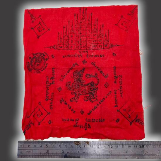 A1488.ผ้ายันต์สิงห์หลวงพ่อโต๊ะ วัดสระเกษ เคาะเดียวเเดง |