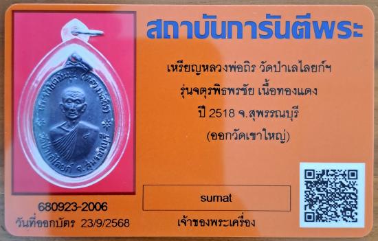 เหรียญจตุรพิธพรชัย หลวงพ่อถิร วัดป่าเลไลยก์ ปี2518