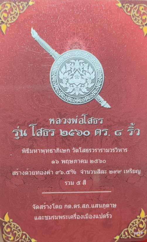 เหรียญใบโพธิ์ สีฟ้า เนื้อทองคำ ชุดกรรมการ No.24 รุ่นโสธร 2560 ตร. แปดริ้ว ยัง wrap พลาสติกไว้ ทองคำ 96.5% พร้อมบัตรรับรองการผลิตจาก บ.แพรนด้า จิวเวลรี่ จำกัด