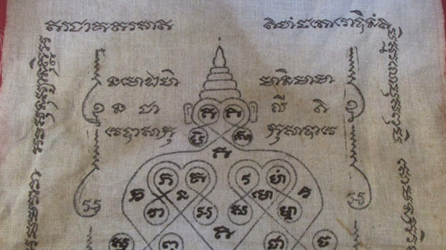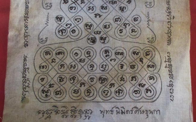 ผ้ายันต์ ไม่ทราบที่ จารยันต์ด้วยมือ ครับ