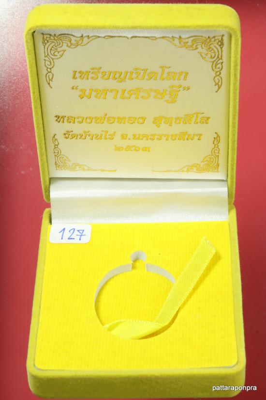เหรียญหลวงพ่อทอง รุ่นเปิดโลกมหาเศรษฐี ปี 2563 เนื้อตะกั่วไม่ตัดปีกหลังเรียบมีจาร หมายเลข 127 |