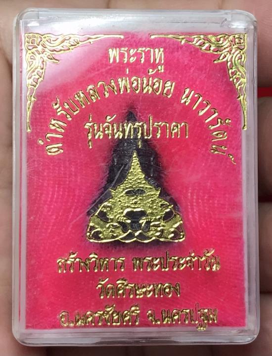 แดงเคาะแรก...รูปหล่อพระราหู รุ่นจันทรุปราคา หลวงพ่อน้อย วัดศรีษะทอง จ.นครปฐม ปี 2546 เนื้อทองเหลืองรมดำ ไม่ผ่านการใช้ พร้อมกล่องเดิมจากวัดครับ |