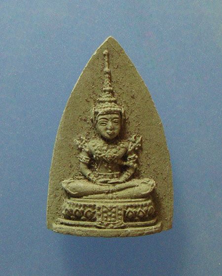 พระแก้วพิมพ์เล็กเนื้อใบตอง หลังโรยเกษาและผงตะไบทองครับ |