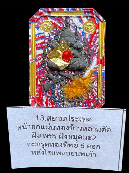 พระปิดตา รุ่น มหาอุตม์พิทักษ์ไทย หลวงปู่ศิลาและอีกหลายเกจิร่วมปลุกเสก 15 วาระ ออกวัดแจ้งใน จ.นครราชสีมา เนื้อสยามประเทศ หน้าอกแผ่นทองข้าวหลามตัด ฝังเพชร ฝังหมุดนะ 2 ตะกรุดทองทิพย์ 6 ดอกฯ No.35 |