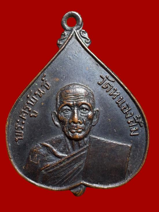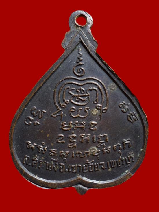 เหรียญพระครูพันธ์ วัดหนองส้ม อ.เขาย้อย จ.เพชรบุรี เหรียญใบโพธิ์ เนื้อทองแดง |