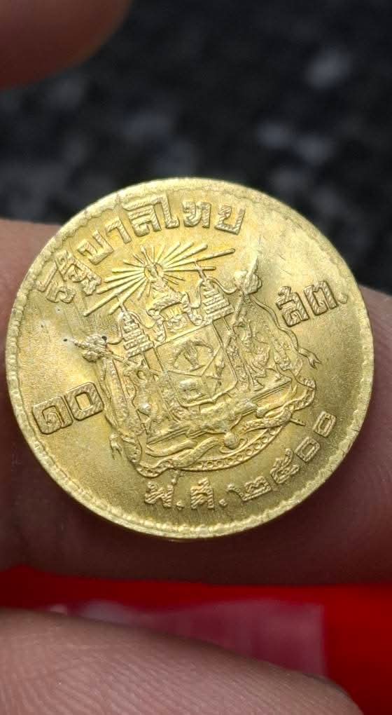 10 สตางค์ตราแผ่นดินปี 2500 เนื้อทองเหลือง ไม่ผ่านใช้ เก่าเก็บ 100 เหรียญ หายากครับ