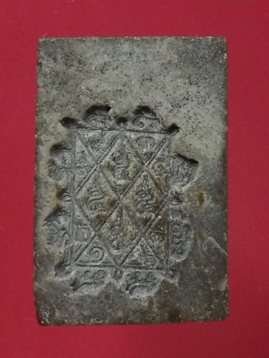 พระผงรูปเหมือนหลวงปู่เฒ่า วัดม่วง ภาษีเจริญ หลังยันต์ตรีนิสิงเห ปี ๒๕๐๖ เนื้อผงน้ำมันผสมว่าน |