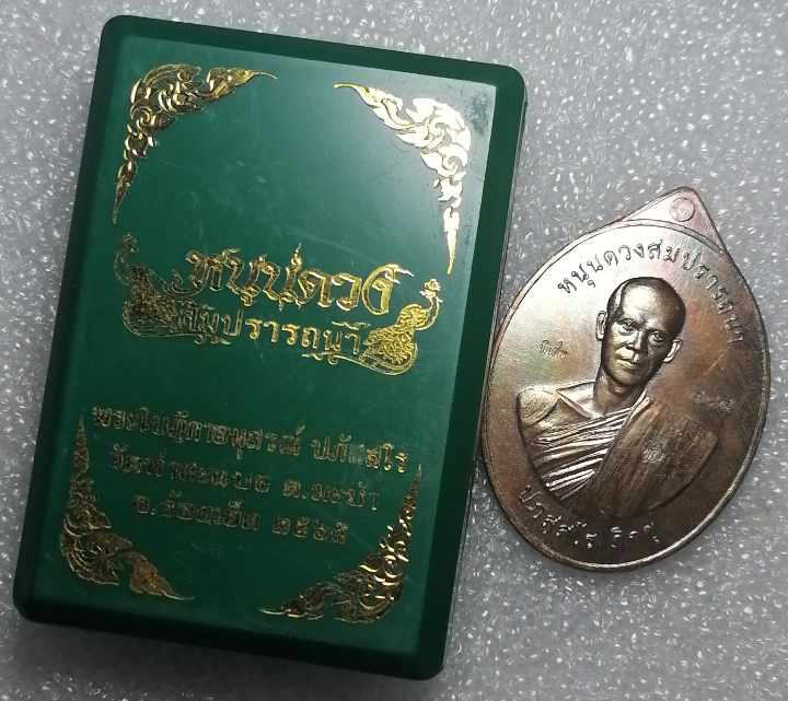 เหรียญหนุนดวงสมปรารถนา เนื้อทองแดง ตอกโค้ดพิเศษ พระอาจารย์อนุสรณ (ต้อม) วัดท่าสะแบง จ.ร้อยเอ็ด กล่องเดิม |