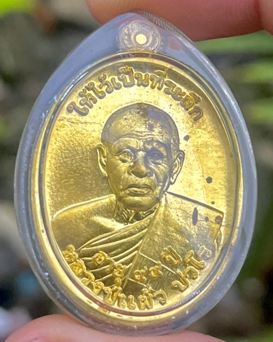หลวงปู่แผ้ว ยันต์สวน99 เนื้อฝาบารต เลข1476พร้อมเลี่ยมเก็บผิว