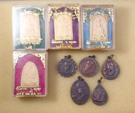 สมเด็จ 3 องค์ + พระผงรูปเหมือน + เหรียญ 5 เหรียญ หลวงพ่อเชิญ วัดโคกทอง อยุธยา |