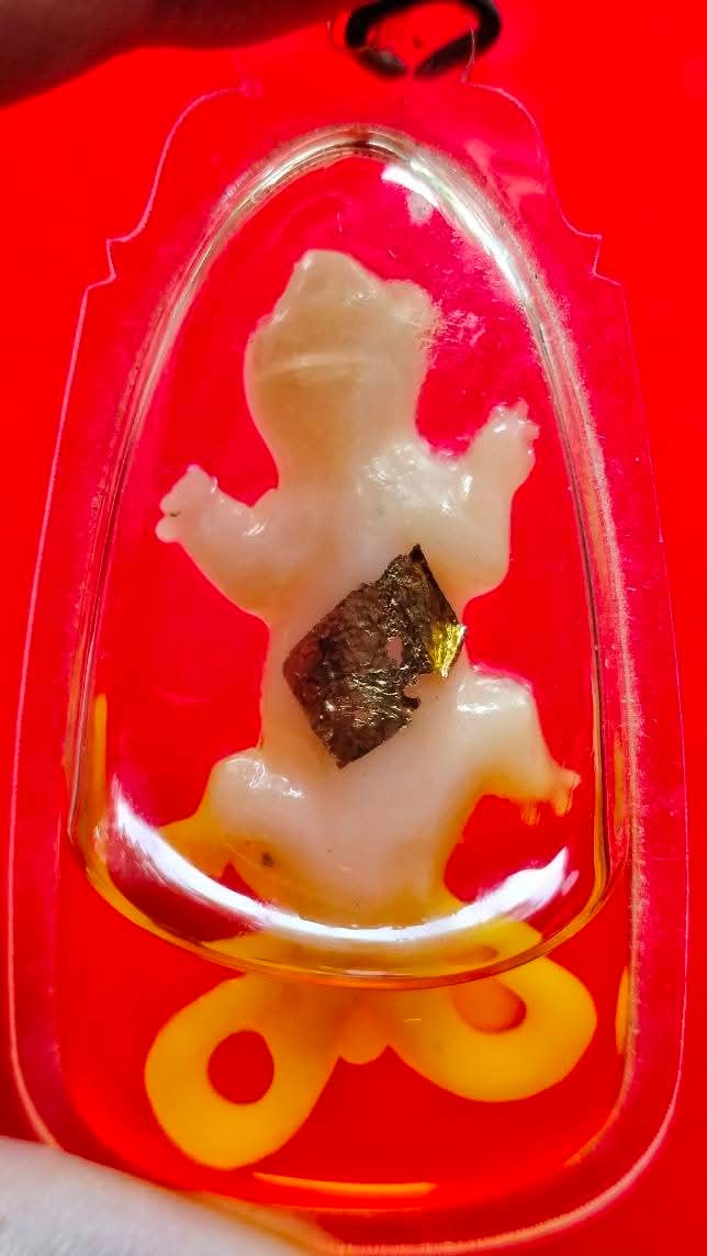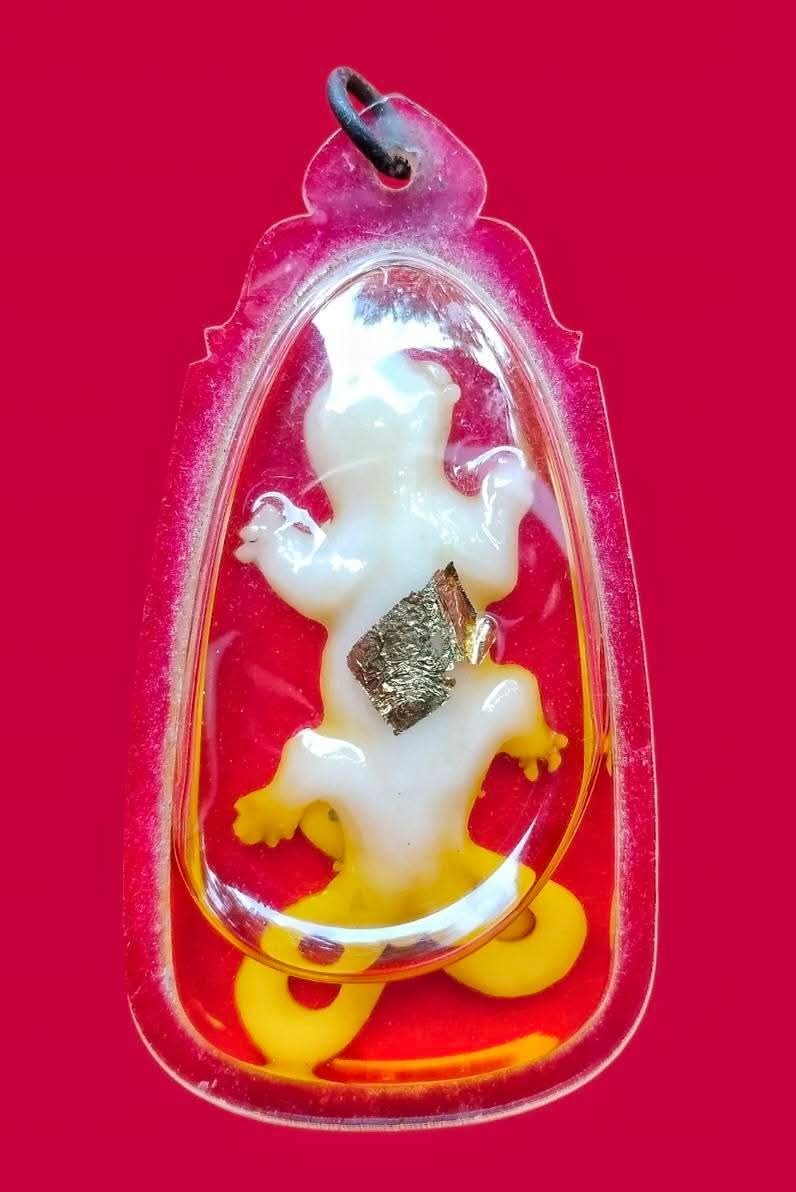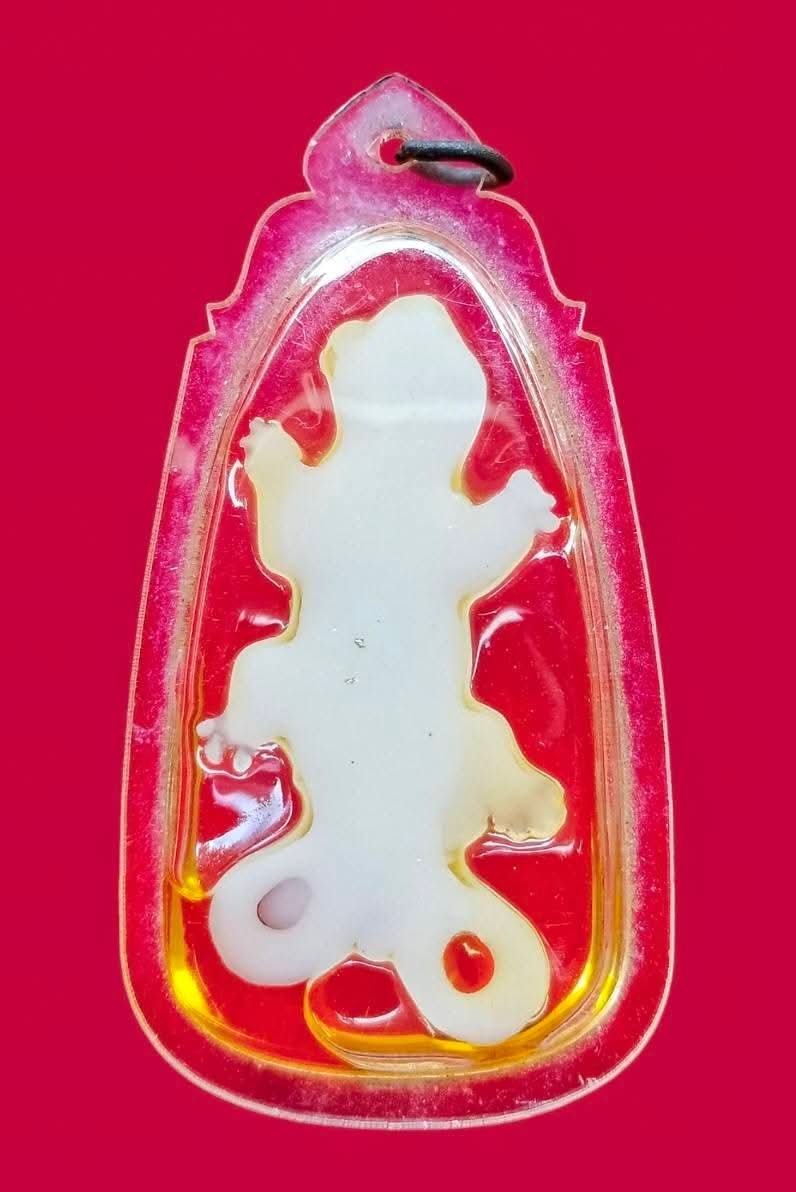 จิ้งจกสองหาง แช่น้ำมันเสก หลวงเตี่ยเจ็ก ถาวโร วัดโคกมะตูม จ.สะแก้ว (เหมาติดมา,ไม่ทราบวัสดุที่สร้าง)