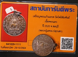 เหรียญพระแก้วมรกต เนื้อทองแดง หลวงปู่แหวนปลุกเสก 2520 พร้อมบัตรรับรอง