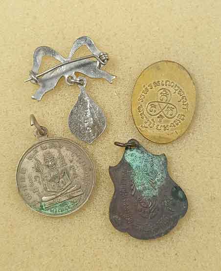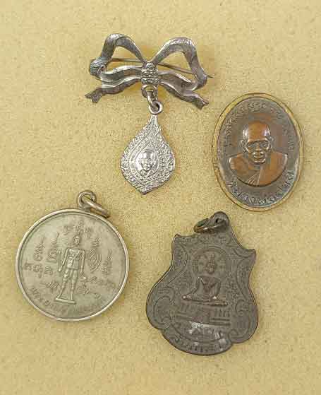 หรียญฉลองเลื่อนสมณะศักดิ์(พัดยศจิ๋ว) หลวงปู่แก้ว วัดช่องลม จ.สมุทรสาคร ปี2510 +เหรียญหลวงพ่อปาน วัดคลองด่านสมุทรปราการ+ เหรียญพระยาพิชัยดาบหัก ปี 16 + เหรียญล้นเกล้าปี 24 วัดโพธิ์ผักไห่ |