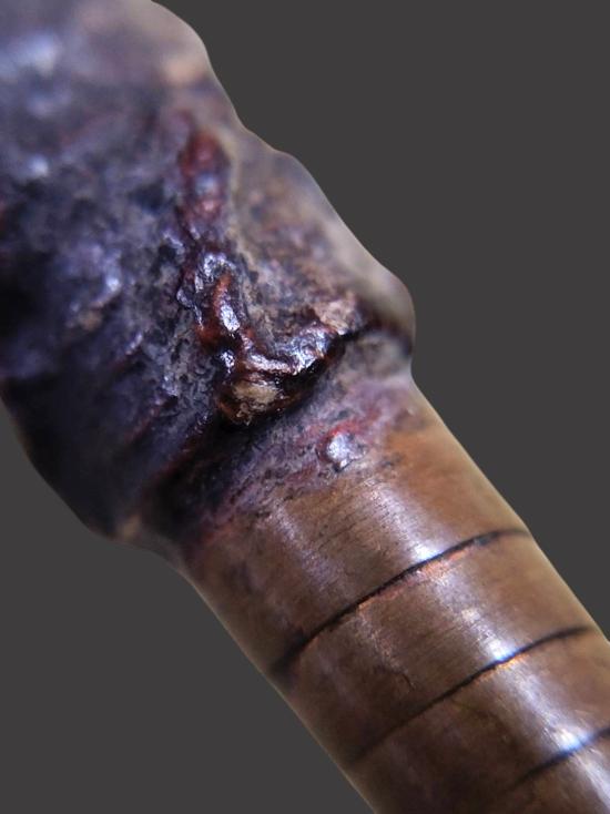 A1567.วัดใจ ตะกรุดเนื้อทองแดงเก่า ถักเชือกจุ่มรัก เก่ามาก วัดใจกันไปเลยครับ เคาะเดียวเเดง