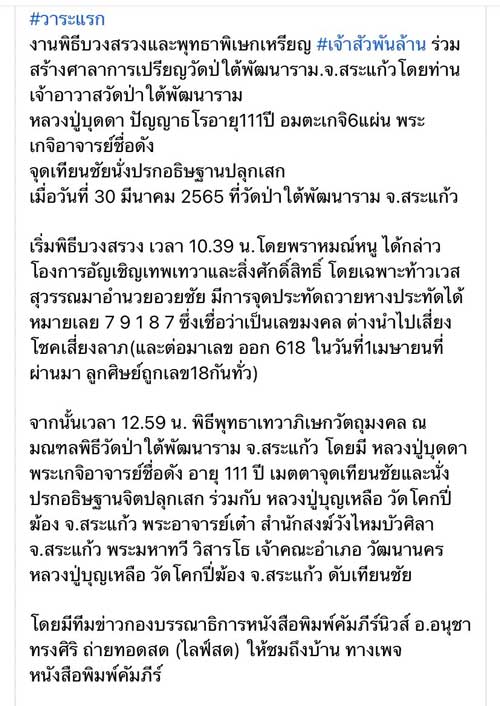 เหรียญประสบการณ์ พระสวยมาก พุทธาภิเษก 2 วาระ เหรียญเจ้าสัวพันล้าน หลวงปู่บุดดา วัดป่าใต้พัฒนาราม จ.สระแก้ว เนื้อ2K จำนวนสร้างน้อย มีเพียง 207 องค์เท่านั้น พุทธาภิเษก 2 วาระ น่าบูชาสุดๆ สวยมาก อนาคตต่อไปจะเป็นพระหลักของหลวงปู่บุดดาแน่นอนครับ ราคายังเบาๆอยู่ครับ เก็บได้รีบเก็บครับ พระหลวงปู่บุดดามีประสบการณ์มากกับผู้ที่แขวนบูชา อนาคตจะเป็นพระหลักของเมืองสระแก้วและภาคตะวันออกแน่นอนครับ โอกาสเป้นของผู้ที่มองเห็นเสมอ รับประกันชั้นหนึ่งครับ |