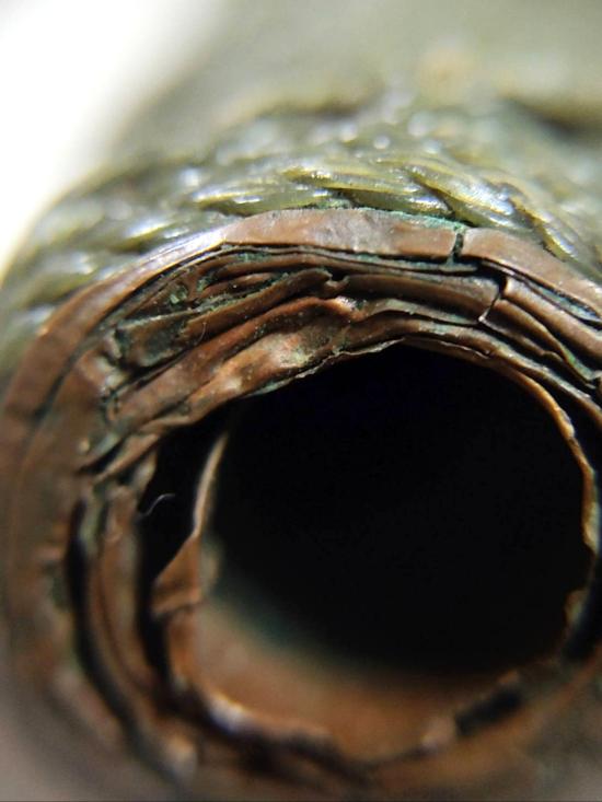 A1570.วัดใจ ตะกรุดโทน ไม่ทราบที่ ถักเชือก วัดใจครับ เคาะดียวเเดง