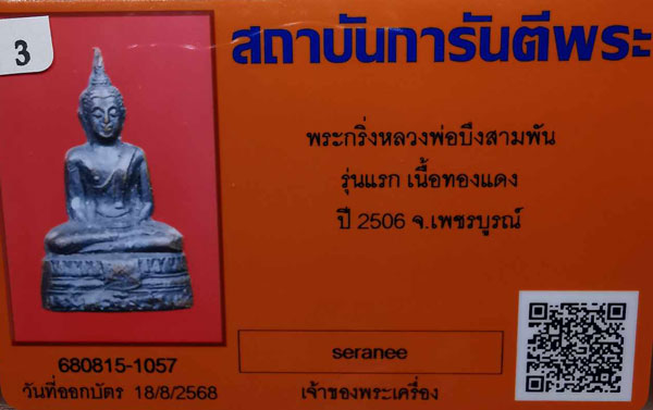 พระกริ่งหลวงพ่อบึงสามพัน รุ่นแรก เนื้อทองแดง ปี2506 จ.เพชรบูรณ์(หลวงพ่อทบ ปลุกเสก) + บัตรG-pra สภาพเดิมค่ะ |