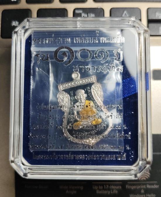 วัดใจ เหรียญเลื่อนสมณศักดิ์หลวงปู่ทวดเนื้อเงินลงยาสีดำ รุ่น 101ปีอาจารย์ทิมสวยครับเลข 348 |