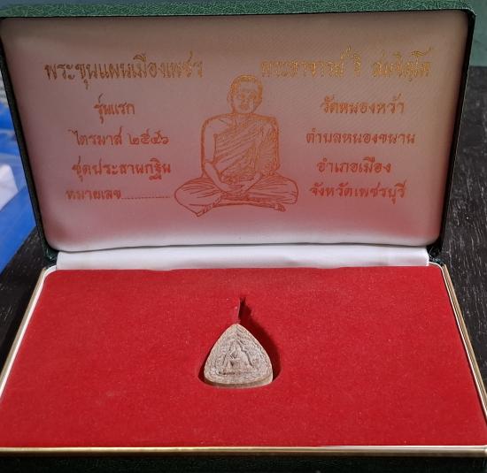 พระขุนแผนเมืองเพชร หลวงพ่อจิ วัดหนองหว้า เพชรบุรี ฝังตะกรุดเงินหลวงพ่อยิด 4 ดอก และตะกรุดทองคำหลวงพ่อจิ 1 ดอก กล่องเดิม |