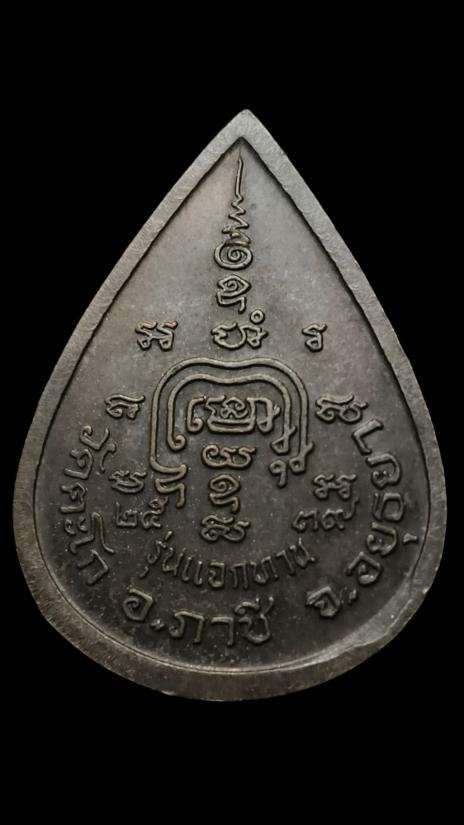 เหรียญหยดน้ำ หลวงพ่อรวย วัดตะโก ปี 39 เนื้อทองแดงรมดำ |