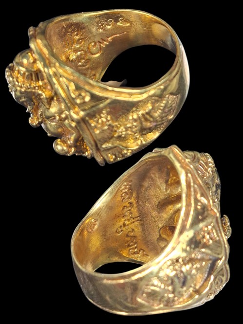 แหวนพระพิฆเนศ หลวงปู่หงษ์ วัดเพชรบุรี พิมพ์ใหญ่ เนื้อทองเหลือง รุ่นมั่งมีศรีสุข ปี 2548 size 12 no. 332. |