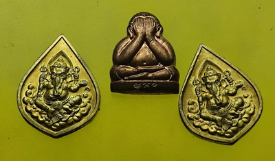 จัดชุดสามองค์(((วัดใจ)))พระปิดตา หลังรูปเหมือน เนื้อทองแดง+พระพิฆเนศ เนื้อฝาบาตร รุ่นสมปราถนา หลวงปู่นนท์ วราโภ วัดเหนือวน จ.ราชบุรี |