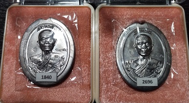 *เหรียญแจกทานในพิธีปลุกเสกวาระสาม ที่วัดบ้านไร่ หลวงพ่อคูณปลุกเสกเดี่ยว รุ่นสร้างบารมี90 เนื้อตะกั่วปีกใหญ่(ไม่เชื่อมห่วง) 2 เหรียญ หมายเลข 2696 / 1840 เคาะเดียว |