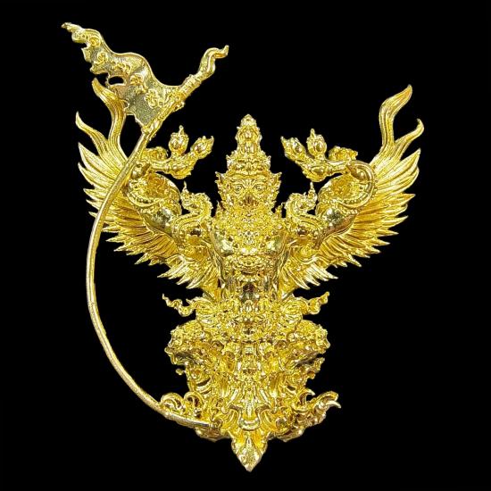 พญาครุฑทรงมหิธานุภาพ เชิญธงเศรษฐี วัดครุฑธาราม อำเภอพระนครศรีอยุธยา จังหวัดพระนครศรีอยุธยา พิมพ์ใหญ่ 4.5 ซม. เนื้อปัญจโลหะบังเกิดทรัพย์ สัมฤทธิ์โชค หมายเลข ๒๙๙๖ พร้อมกล่องเดิม |
