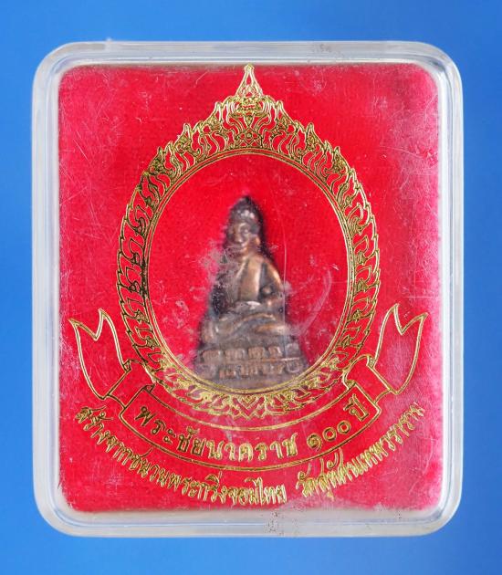 เริ่มเคาะแรก พระชัยนาคราช 100 ปี (พระชัยหน้าอินเดีย) เนื้อนวโลหะผิวปัดแต่ง วัดนาคราช(สังกะสี) จ.สมุทรปราการ ปี 2544 ราคาจองออกวัดองค์ละ 500 บาท |