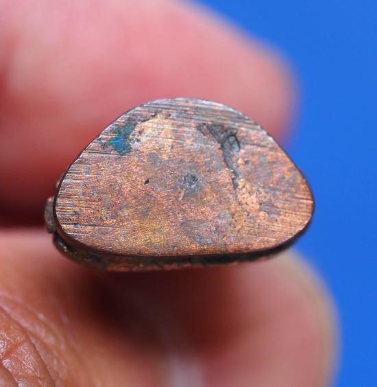 พระชัยนาคราช 100 ปี (พระชัยหน้าอินเดีย) เนื้อนวโลหะผิวปัดแต่ง วัดนาคราช(สังกะสี) จ.สมุทรปราการ ปี 2544 ราคาจองออกวัดองค์ละ 500 บาท องค์นี้สภาพสวยผิวเดิม กล่องเดิม ขนาด กว้าง 1.5 x 3 ซม.