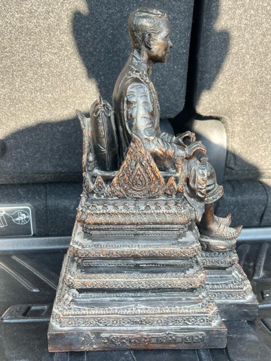 พระบูชา พระบรมรูปในหลวงนั่งบัลลังก์ 60 พรรษา ฐานกว้าง 8 นิ้ว สูง 15 นิ้วเนื้อปูนอาบทองแดง